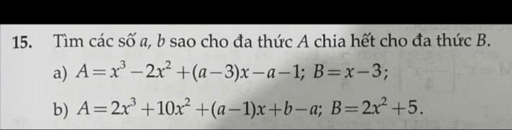 a)Vì A chia hết cho B nên 3 là nghiệm của A