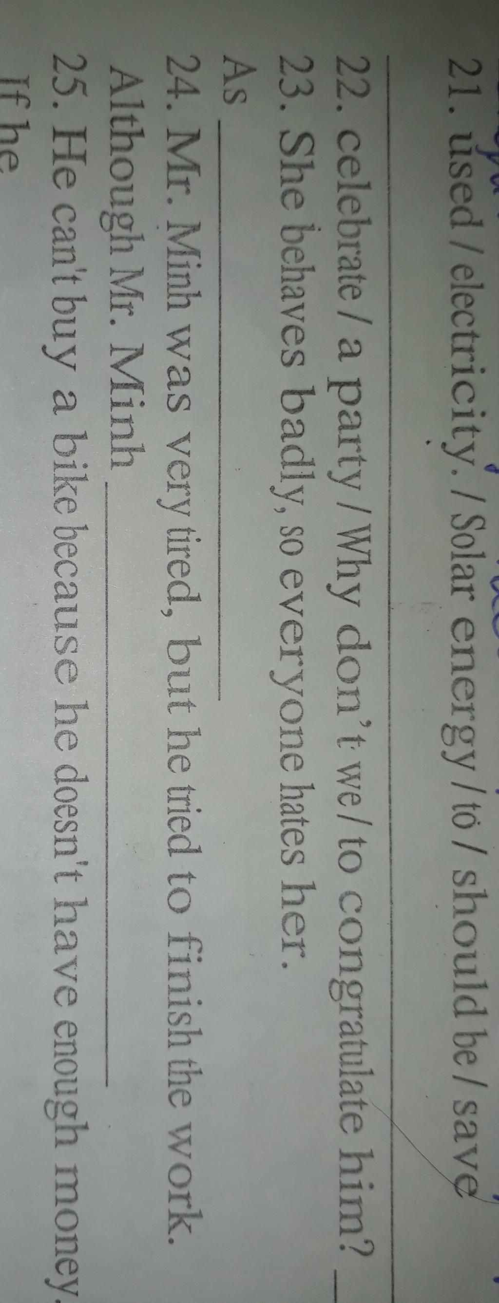 24. Mr. Minh was very tired, but he tried to finish the work.