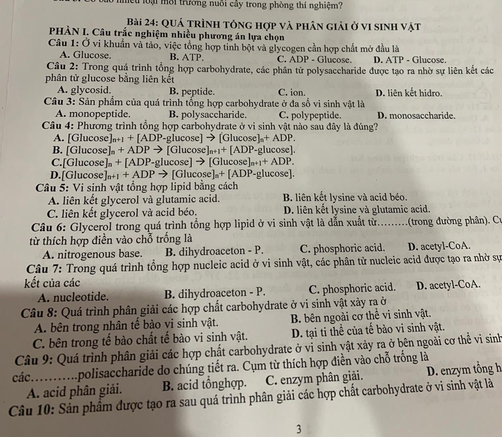 Glycerol trong quá trình tổng hợp lipid ở vi sinh vật là dẫn xuất từ đihyđroaxeton photphat (DHAP)