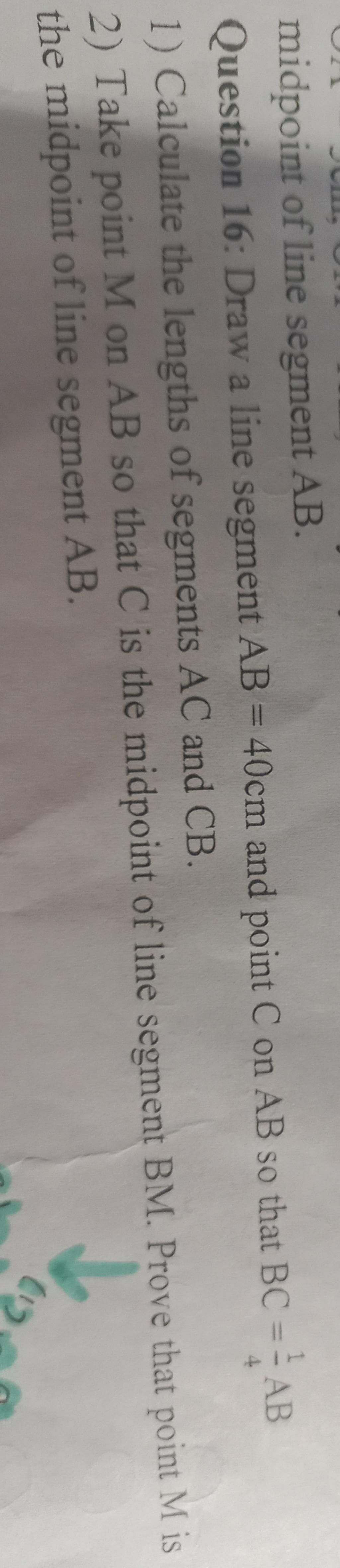 Question 16: Draw a line segment AB = 40cm and point C on AB so that BC == AB