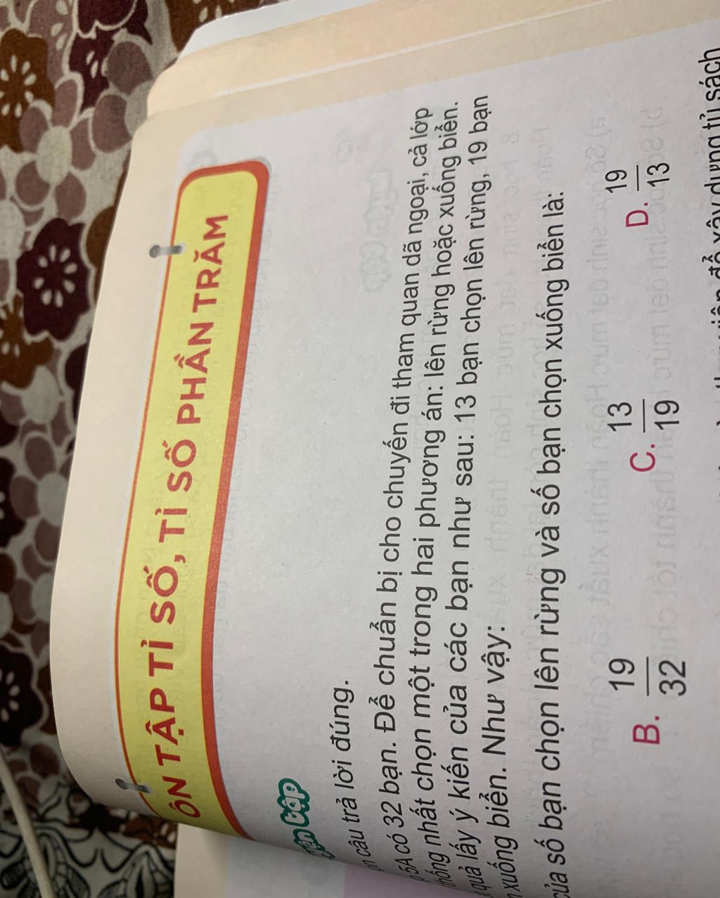 $\text{ => Ta khoanh vế C. 13/19. }$
