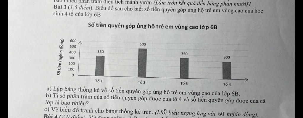 Bài 3 (1,5 điểm). Biểu đồ sau cho biết số tiền quyên góp ủng hộ trẻ em vùng cao của học