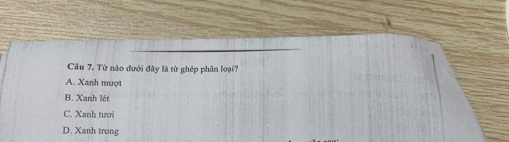 `=>` Các từ còn lại không nêu được rõ ràng sự phân loại cấp, mức độ của màu "xanh", vì vậy, ta có đáp án `C`.