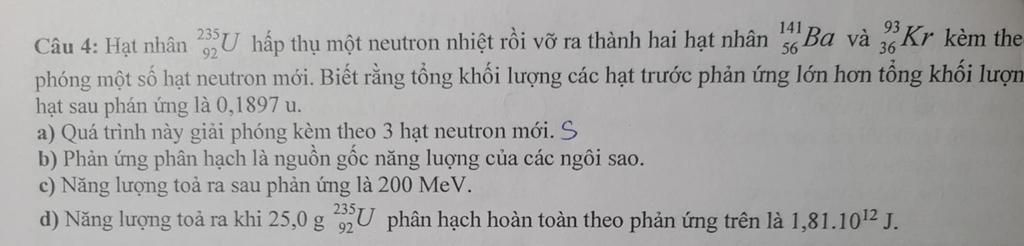 Vậy quá trình này giải phóng 2 hạt neutron mới.