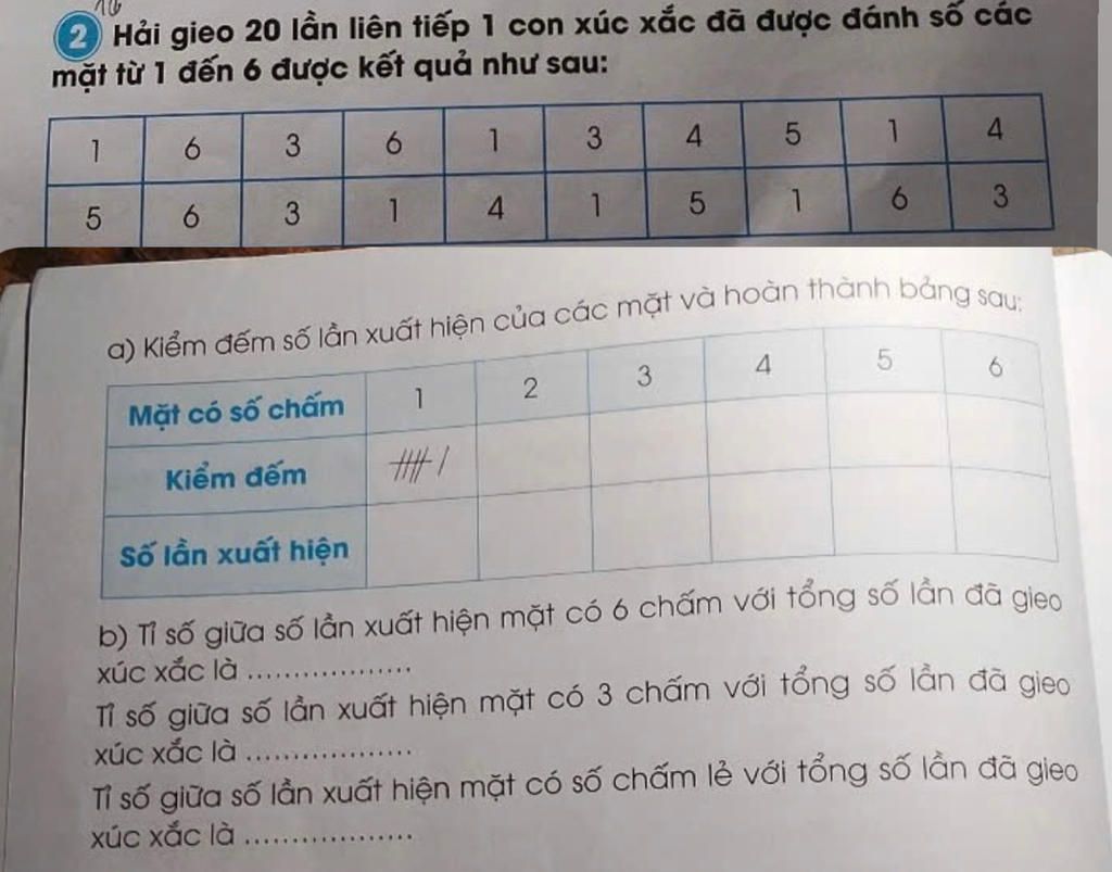 2 Hải gieo 20 lần liên tiếp 1 con xúc xắc đã được đánh số các