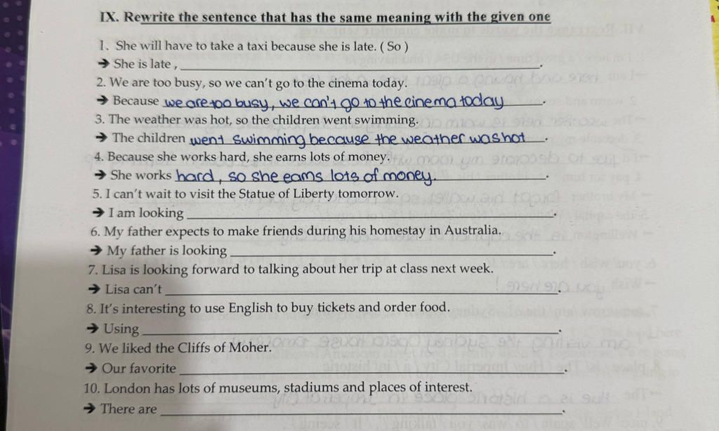 `2.` Because we are too busy, we can't go to the cinema today.