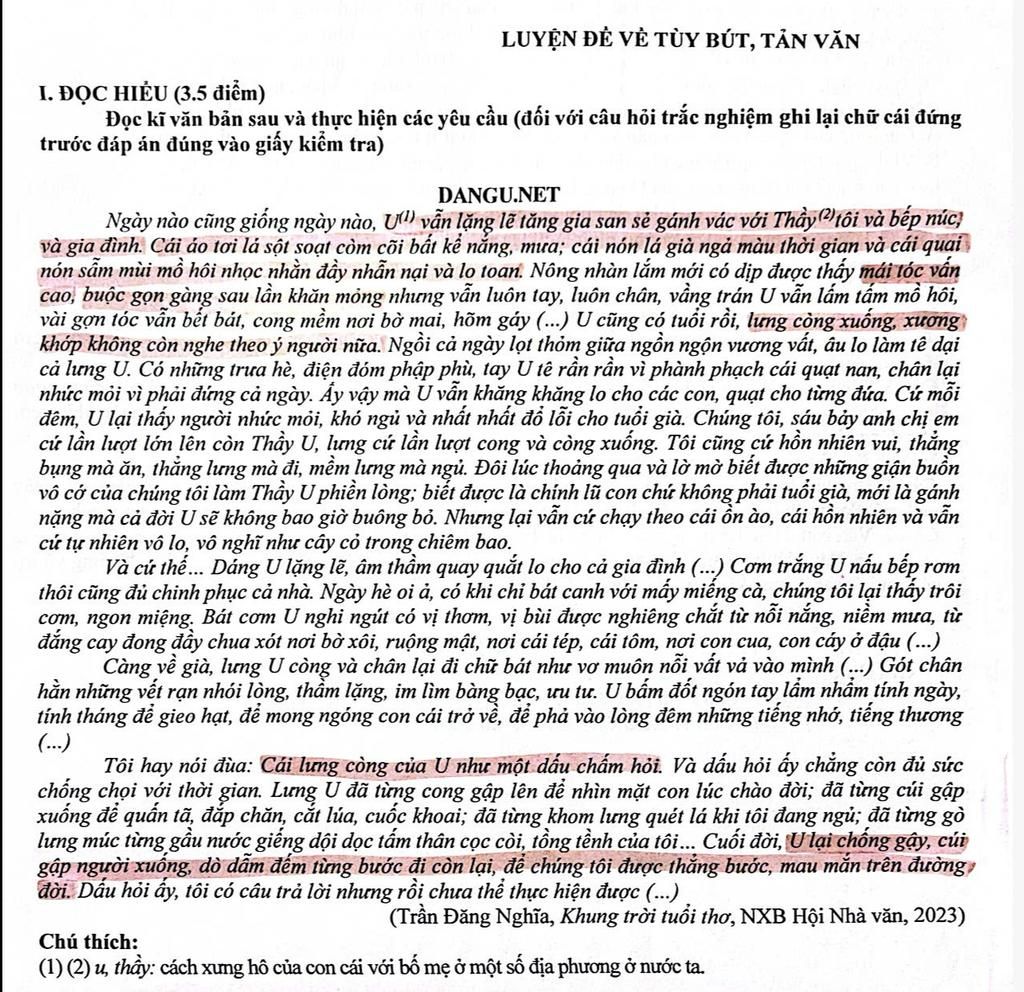viết đoạn văn (10 -12 câu) ghi lại cảm nghĩ của em về hình ảnh người U trong văn bản
