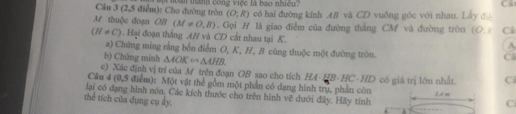 Câu 3 (2,5 điểm): Cho đường tròn (O;R) có hai đường kính AB và CD vuông góc với nhau. Lấy để