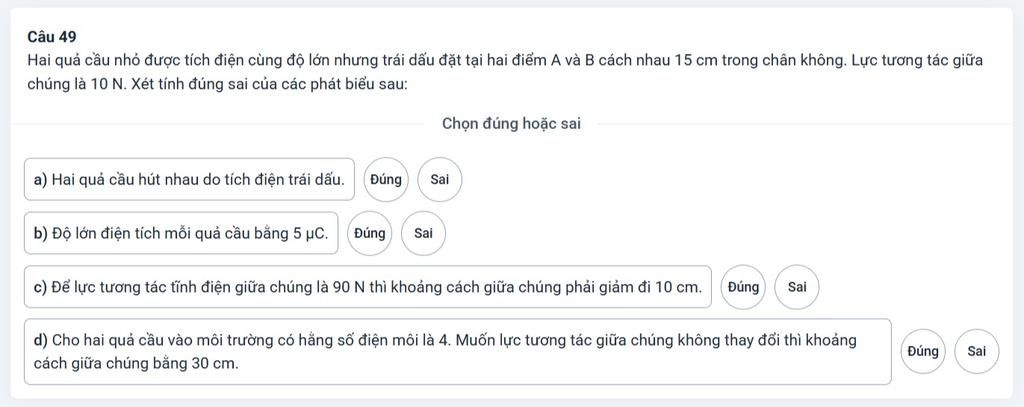 Lực tương tác giữa chúng không thay đổi khi `F_1=F_2`