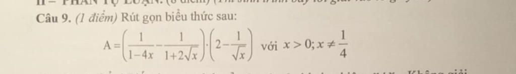 `A=((1)/(1-4x)-(1)/(1+2\sqrt{x})).(2-1/(\sqrt{x}))` với `x>0;x\ne1/4`