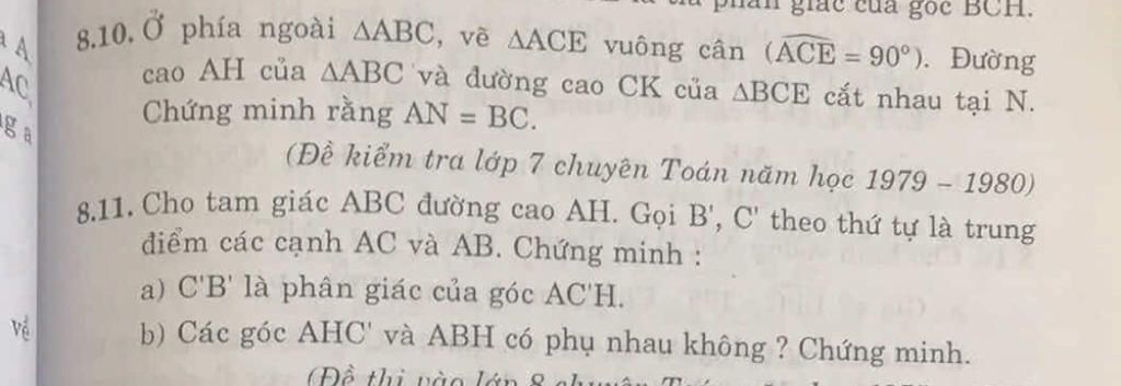 8.11. Cho tam giác ABC đường cao AH. Gọi B', C' theo thứ tự là trung