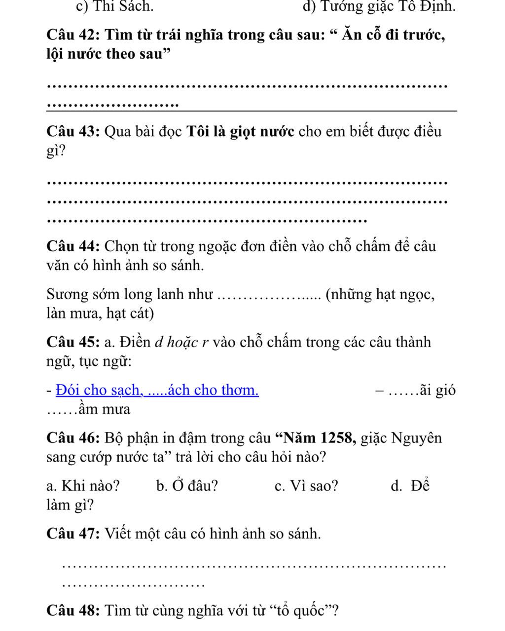 CÂU 42: Cặp từ " trước'' - ''sau''