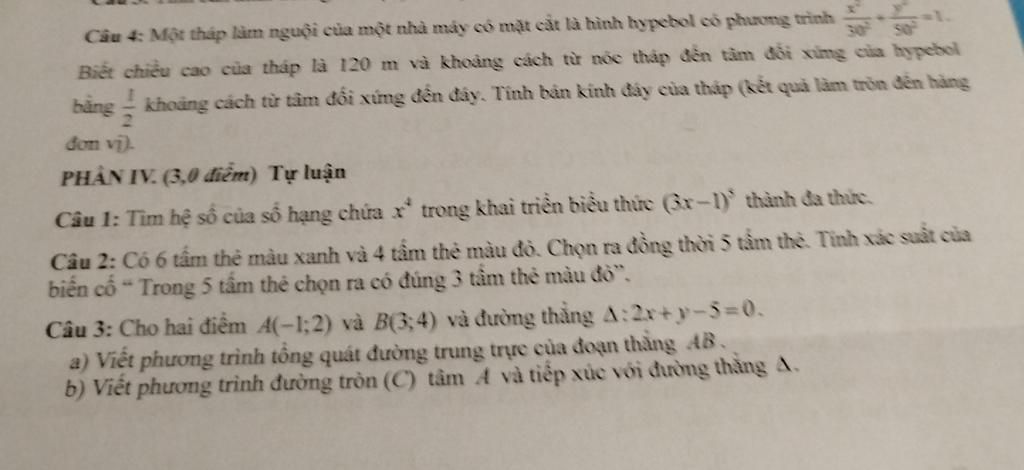 Có: `(x^2)/(30^2)-(y^2)/(50^2)=1`