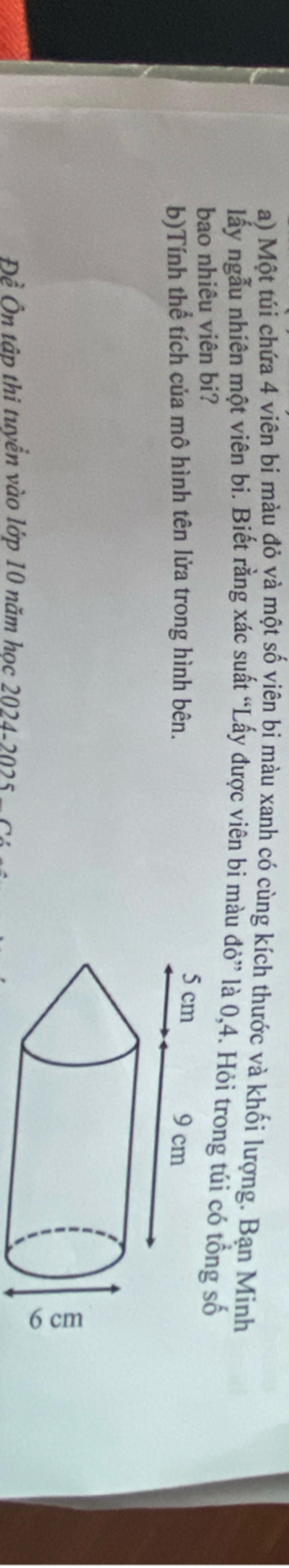 `-> V_(tên\ lửa)=V_(nón)+V_(trụ)=15\pi +81\pi = 96\pi\ (cm^3)`