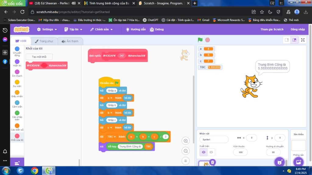 Tính trung bình cộng của Ba số a,b,c với a,b,c Nhập Từ bàn phím