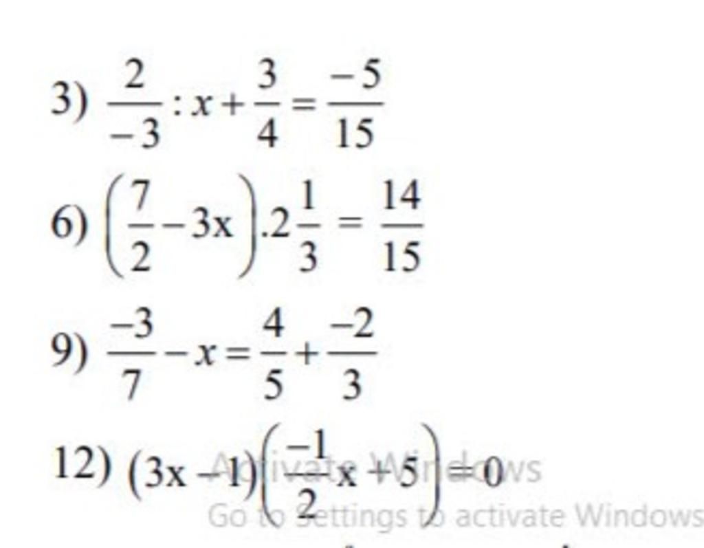 6) ($\frac{7}{2}$ - 3x ) = $\frac{14}{15}$ × $\frac{3}{7}$ = $\frac{2}{5}$