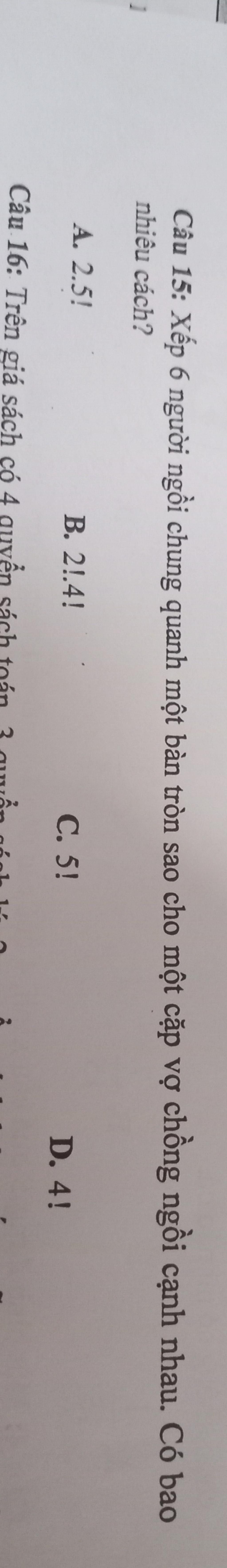 Theo công thức hoán vị `5` phần tử quanh bàn tròn là :