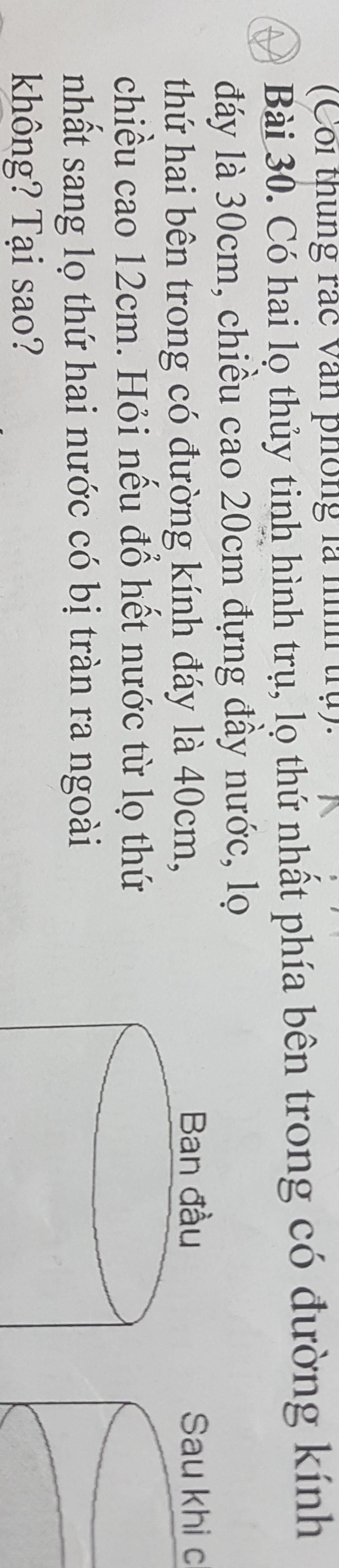 Bán kính lọ thứ nhất là: R=30:2=15 ( cm)