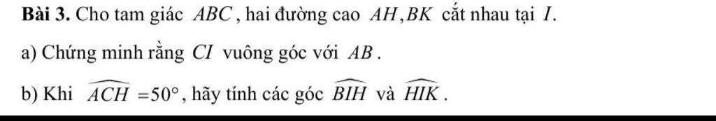 $\widehat{BIH}=90^o-\widehat{IBH}=90^o-\widehat{KBC}=\hat C=50^o$