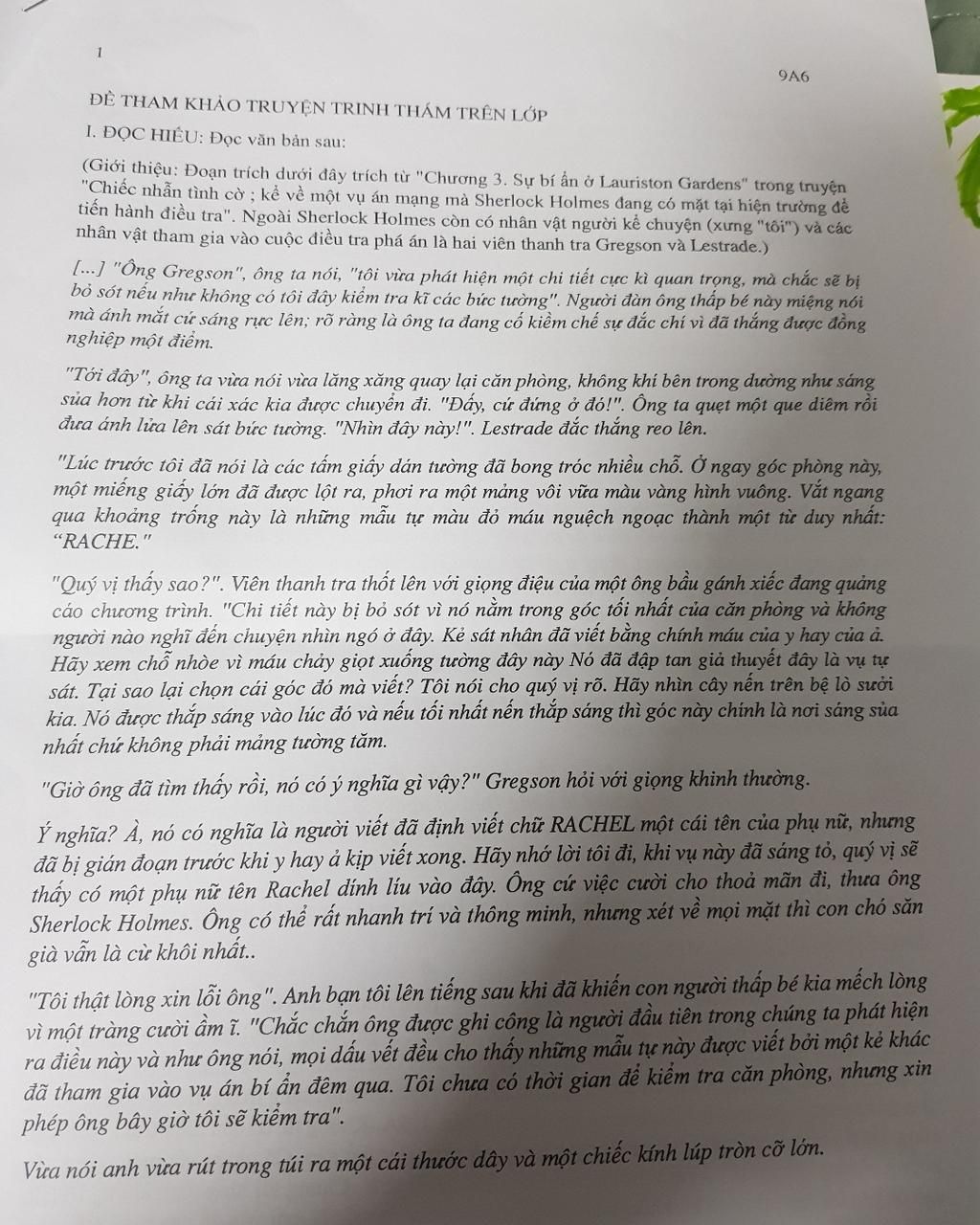 ĐỀ THAM KHẢO TRUYỆN TRINH THÁM TRÊN LỚP