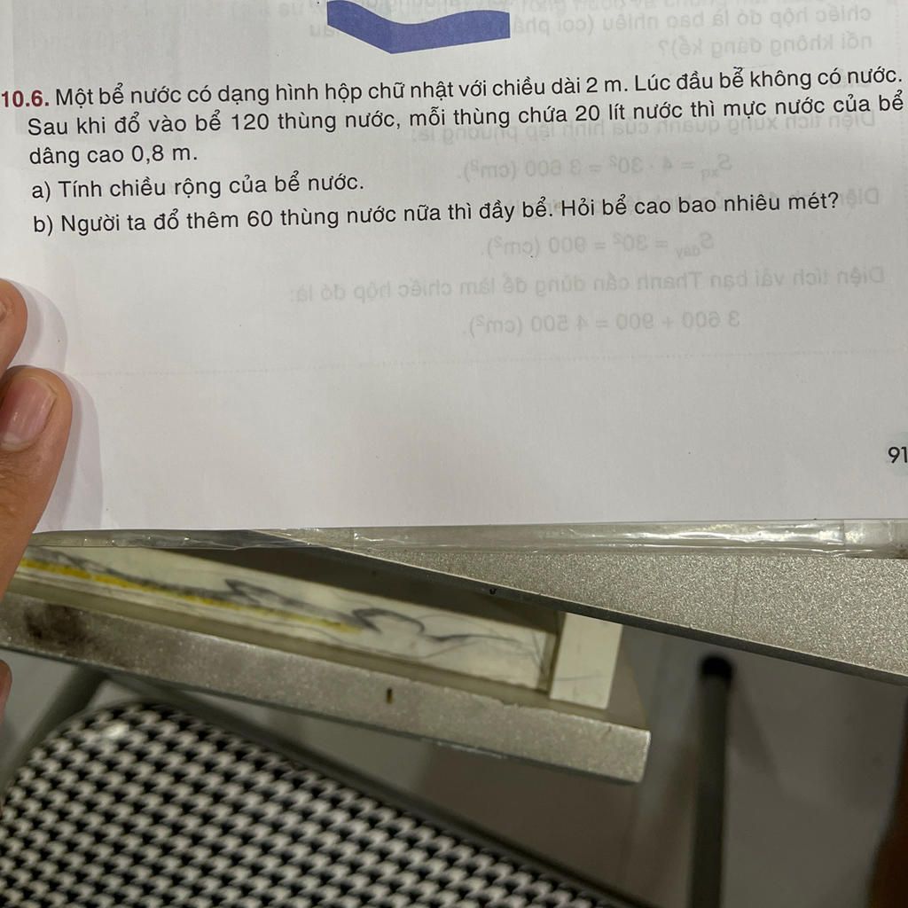 `a)` Thể tích nước đổ vào bể lúc đầu là: