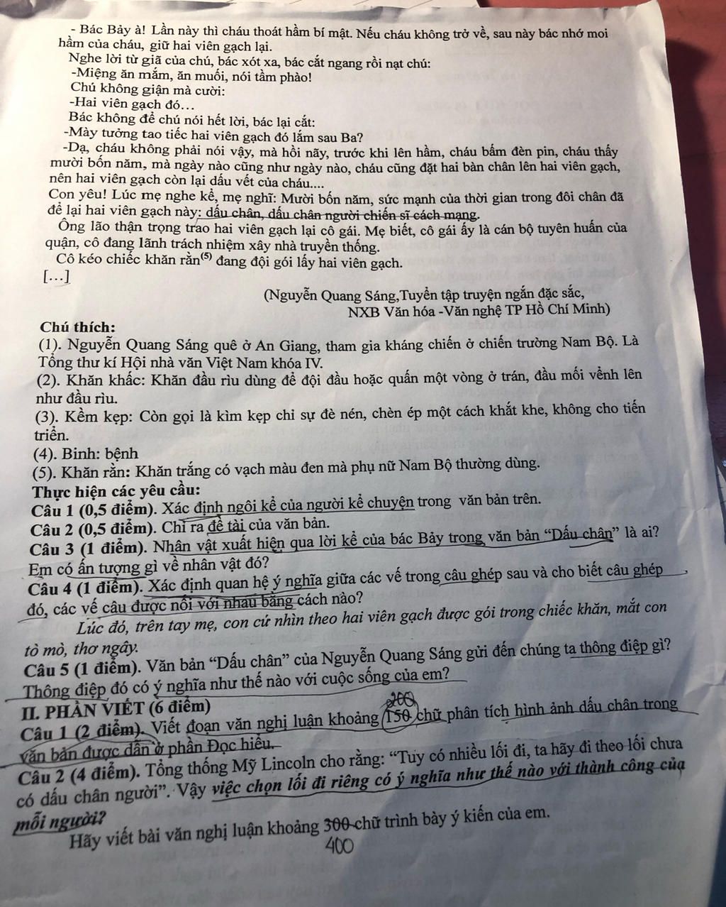 6. Văn bản gửi đến thông điệp sâu sắc về lòng yêu nước, tinh thần dũng cảm và sự hi sinh thầm lặng của những người chiến sĩ trong chiến tranh. Đặc biệt, hình ảnh hai viên gạch đỏ không chỉ là một chi tiết thực mà còn mang giá trị biểu tượng thiêng liêng, thể hiện tinh thần trách nhiệm, sự kiên cường và lòng trung thành tuyệt đối với nhiệm vụ của người chiến sĩ dù trong hoàn cảnh khốc liệt nhất. Qua đó, tác giả muốn nhấn mạnh rằng: chiến công không chỉ đến từ những việc lớn lao mà còn nằm trong những hành động âm thầm nhưng đầy dũng cảm và cao cả.