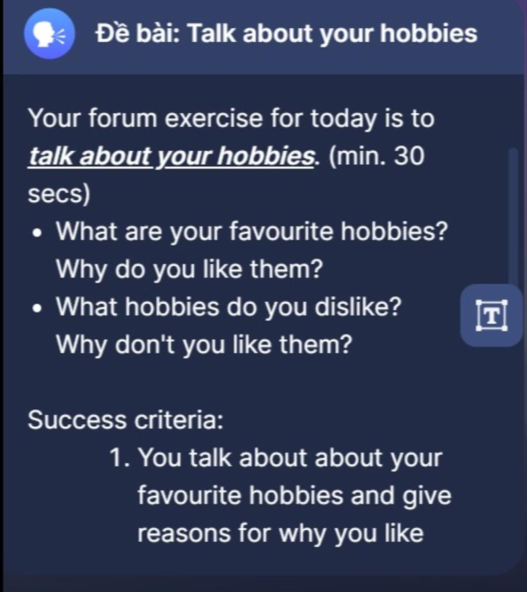 Hi everyone! Today I’d like to talk about my hobbies.