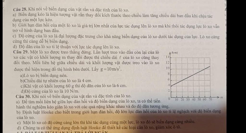 `c)` Lò xo có độ cứng càng lớn càng khó bị biến dạng, khi tác dụng cùng một lực, lò xo có độ cứng lớn biến dạng ít hơn lò xo có độ cứng nhỏ.