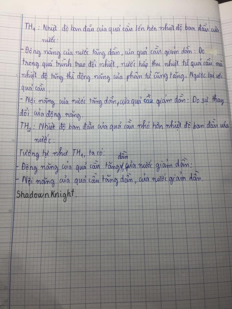 Trong quá trình trên động năng của các phân tử nước và nguyên tử kim loại nội năng của nước và của quả cầu trong cốc thay đổi như thế nào