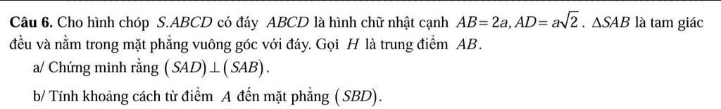 `=> (HK)= (BH)/(BD).AD= (1/2 . AB)/(sqrt(AB^2 + AD^2 )). AD = a/(sqrt(4a^2 + 2a^2)). asqrt2 = a/(sqrt3)`