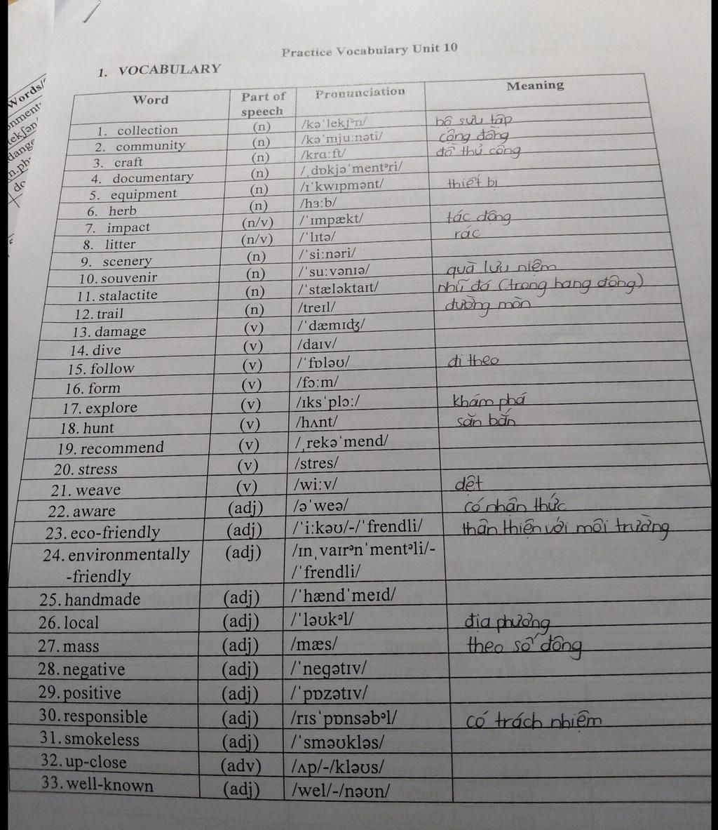 `10.` souvenir (n): đồ lưu niệm (trong hàng đóng)