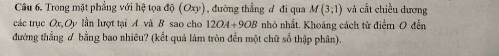 Mà $(d)$ đi qua $M(3,1)$