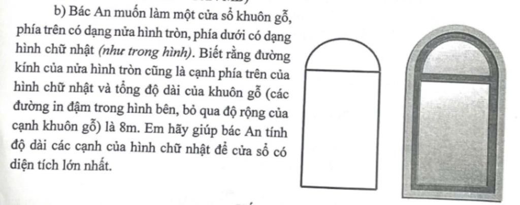 b) Bác An muốn làm một cửa sổ khuôn gỗ,