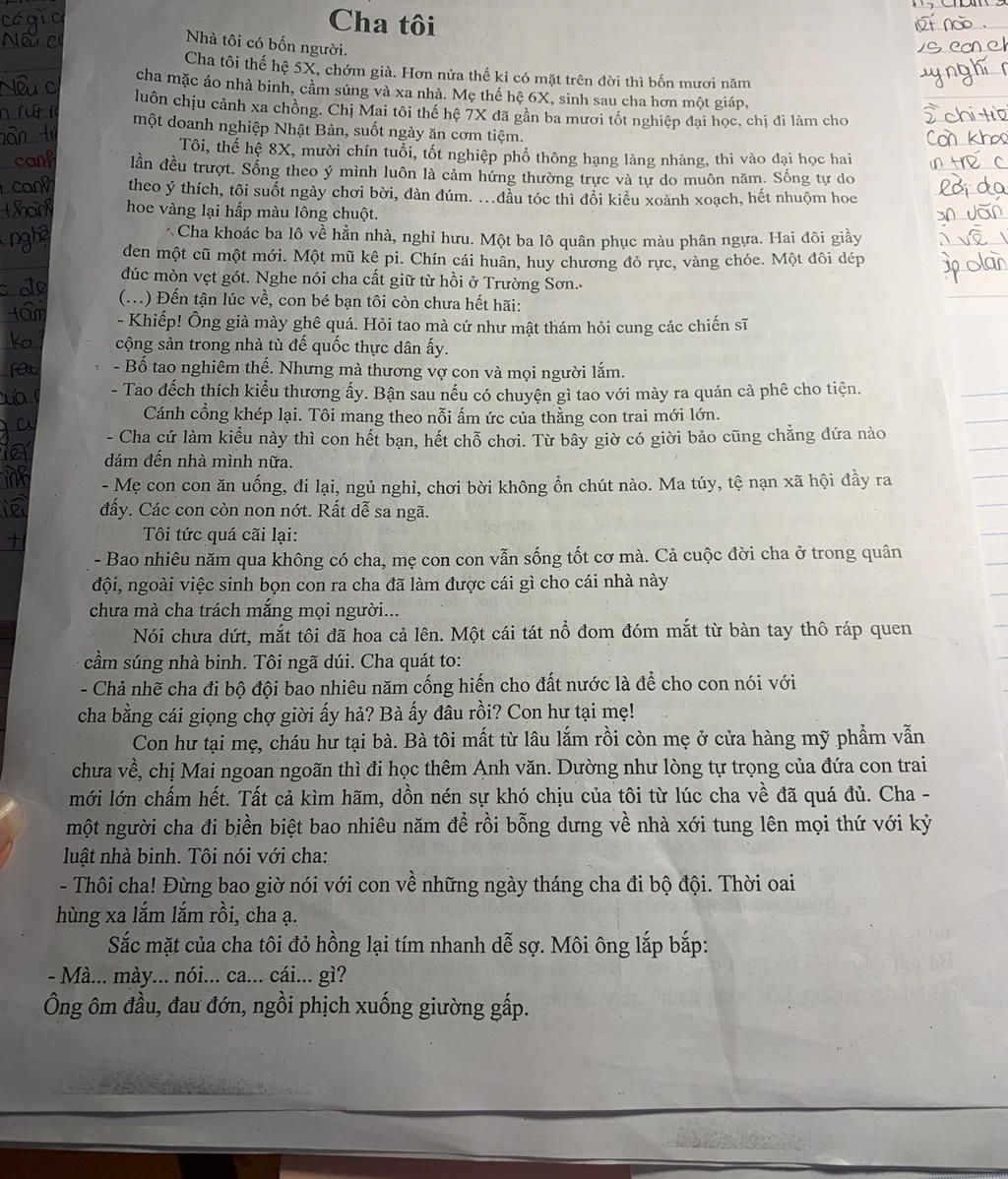 `@` Nhận thức rõ giá trị của gia đình, của cha `-` người đã hy sinh cả đời vì con cái.