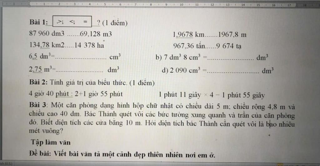 Bài 2: Tính giá trị của biểu thức. (1 điểm)