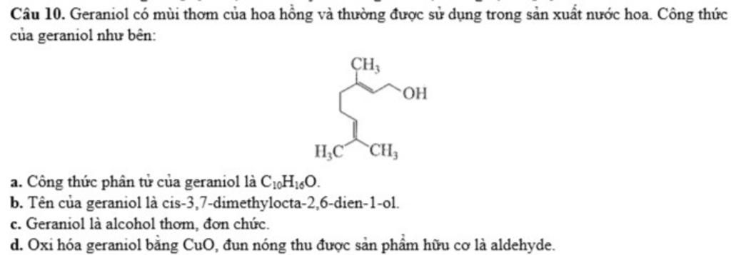 b) sai, tên đúng: trans-3,7-dimethylocta-2,6-dien-1-ol