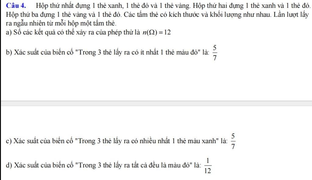 Lấy 1 thẻ ở hộp thứ ba(không tính thẻ màu đỏ):`1` cách