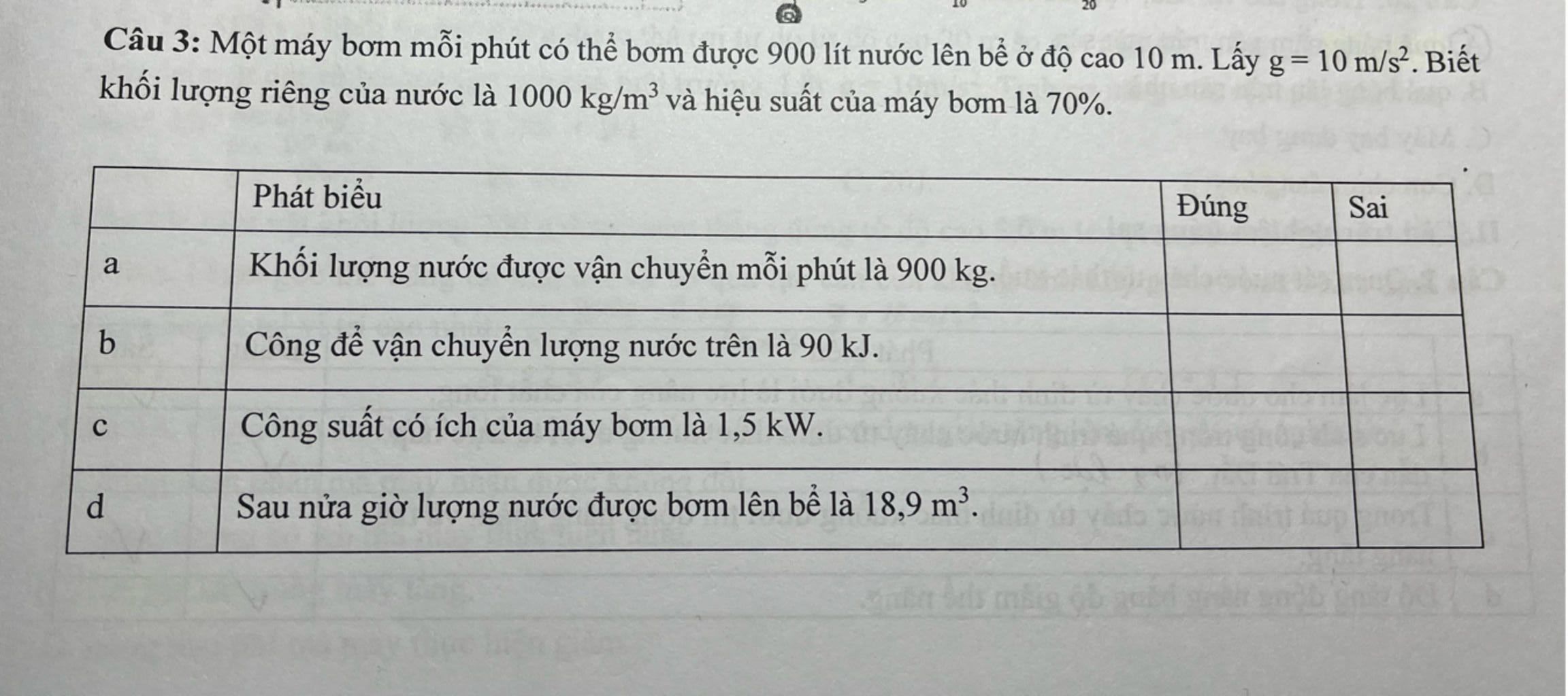 Thể tích nước bơm được trong nửa giờ: `0.9*30=27(m^3)`
