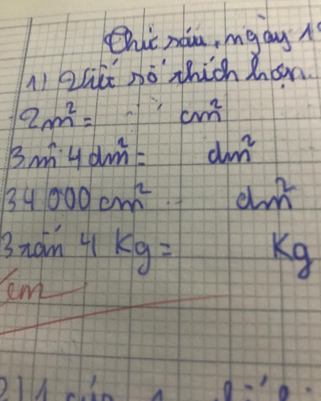 ` -> 34000cm^2 = 34000 : 100 = 340dm^2 `