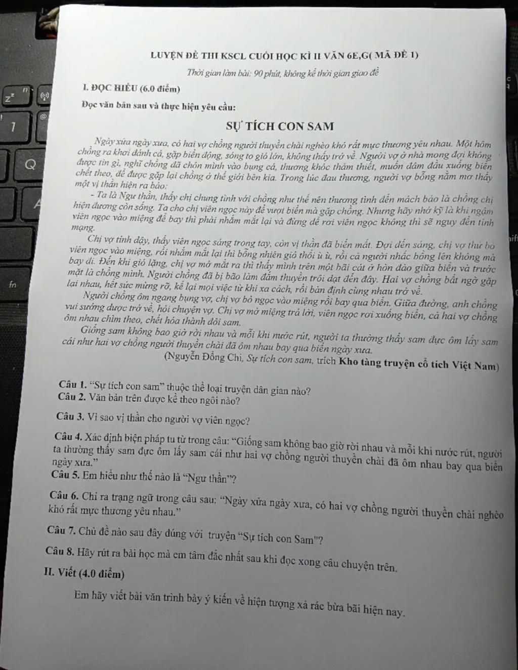 câu 2: được kể theo ngôi thứ ba (người kể giấu mình, gọi nhân vật là "vợ chồng" người thuyền chài", chị vợ"