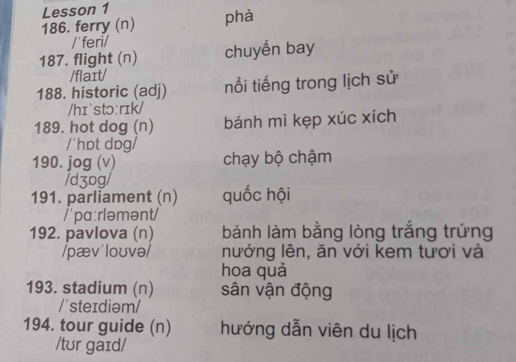 `-` Last summer, I took a flight at the airport, after I took a ferry to explore the historic urban area. During lunch, I enjoyed a hot dog sandwich at a formal, polite restaurant. After finishing eating, to digest, I ran slowly around the nearby stadium. In the late afternoon, the tour guide took us to the national assembly room to introduce the history of this beautiful urban area. At night, we shared a very special and delicious dish in the eyes of the people - pavlova, a perfect dish for our happy day.