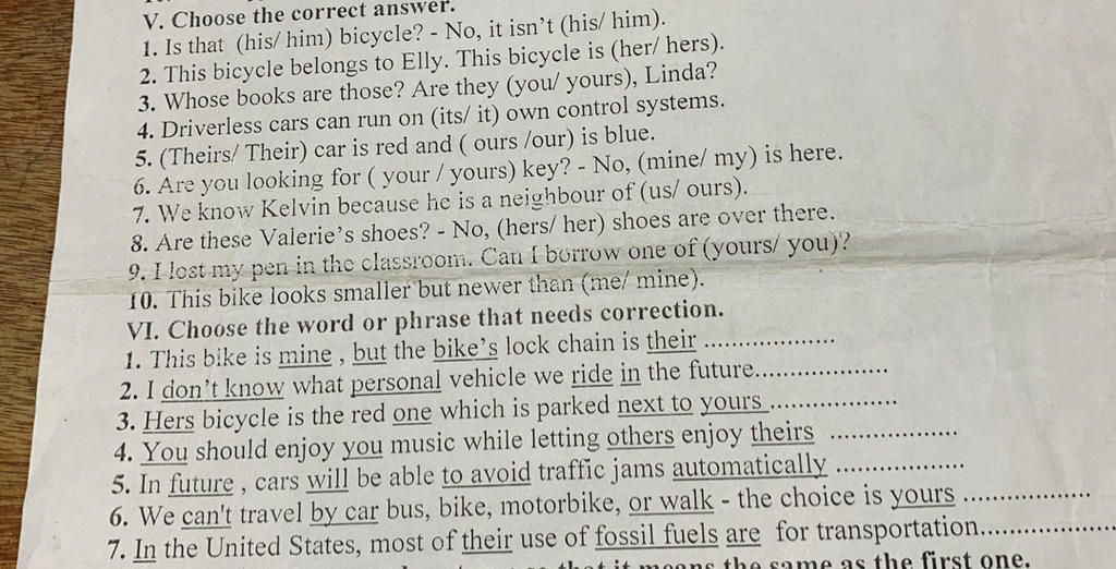 1. Is that (his/ him) bicycle? - No, it isn't (his/ him).