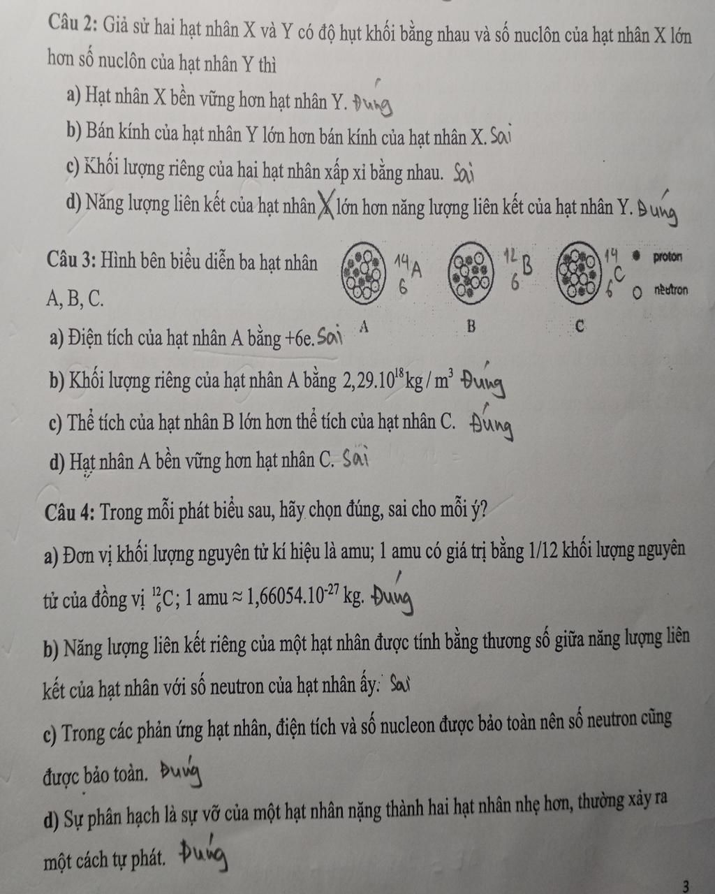 Câu 2: Giả sử hai hạt nhân X và Y có độ hụt khối bằng nhau và số nuclôn của hạt nhân X lớn