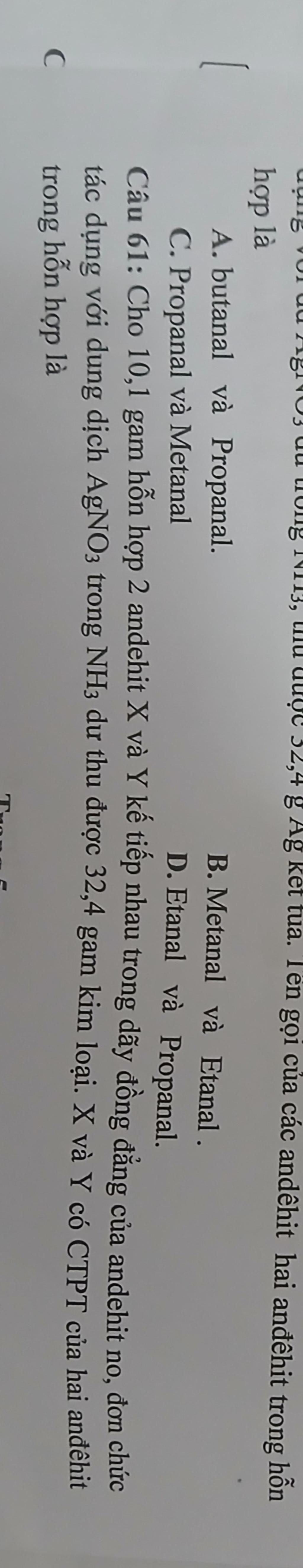 `->` 2 andehit là `C_2H_5CHO` và `C_3H_7CHO`