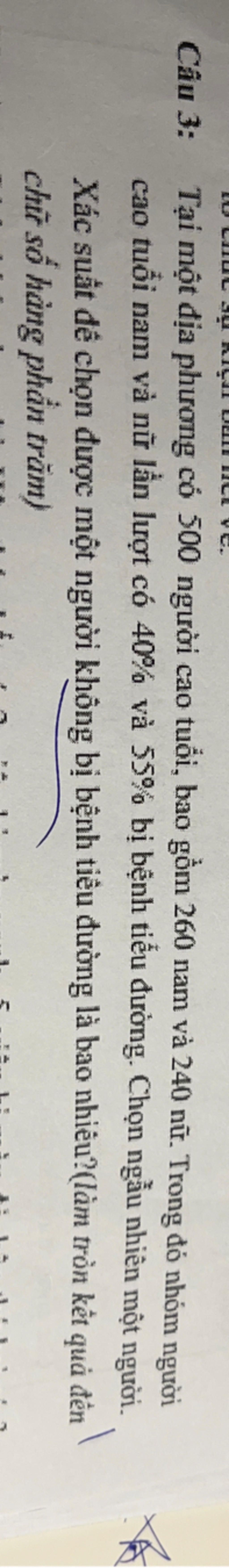 `P(overline(A))=1-P(A)=1-[ (C_260^1)/(C_500^1)* 40%+(1-(C_260^1)/(C_500^1))*55%]=1-0,472=0,528~~0,53`
