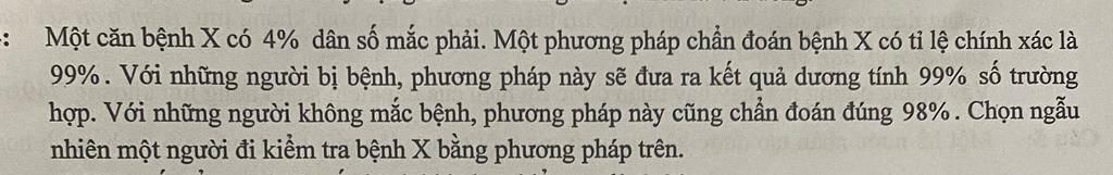 Xác suất kết quả dương tính nếu người đó không mắc bệnh 0,01 là đúng hay sai ?