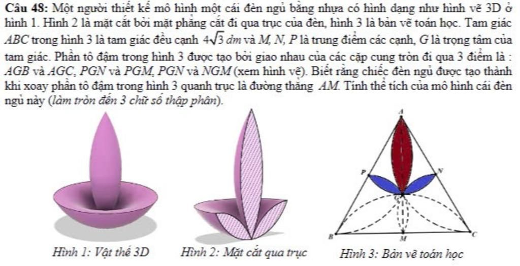 Câu 48: Một người thiết kế mô hình một cái đèn ngủ bằng nhựa có hình dạng như hình vẽ 3D ở