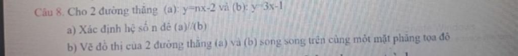 Đáp án:a) a//b nên a`=a hay n=3,-2 khác -1 =>3x-2