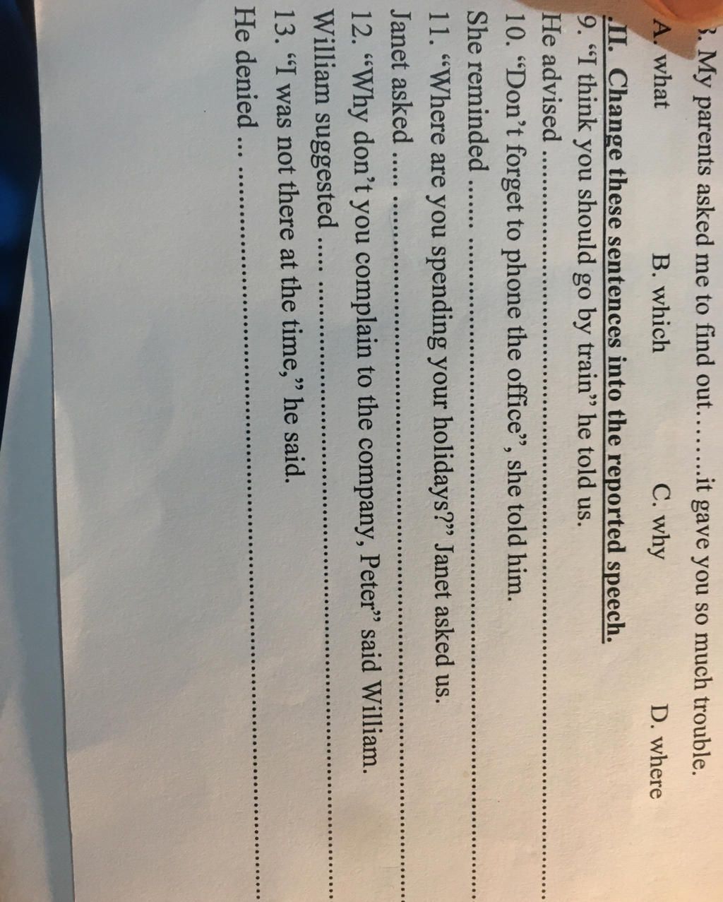 `@` S + asked + (O) + Wh-word + S + V (lùi thì)