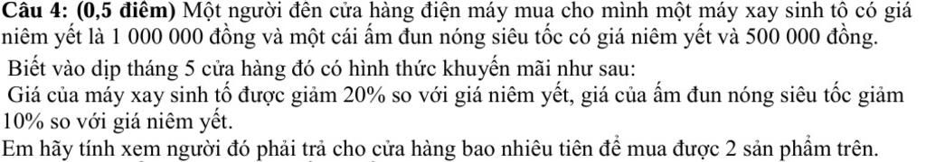 `500` `000 . ( 100% - 10% ) = 450` `000 (` đồng `)`